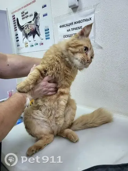 Окрас рыжий,помесь Мейн-куна,около 5 лет судя по зубам,шея немного в бок по непонятным причинам
