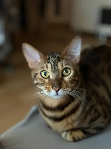 Кот, молодой, кастрированный, внешне очень похож на бенгала. Забежал в подъезд, забился за входную дверь. Временно поставили на площадке кошачий домик, согрели, накормили. Котик абсолютно домашний, контактный, приучен к лотку, игривый.