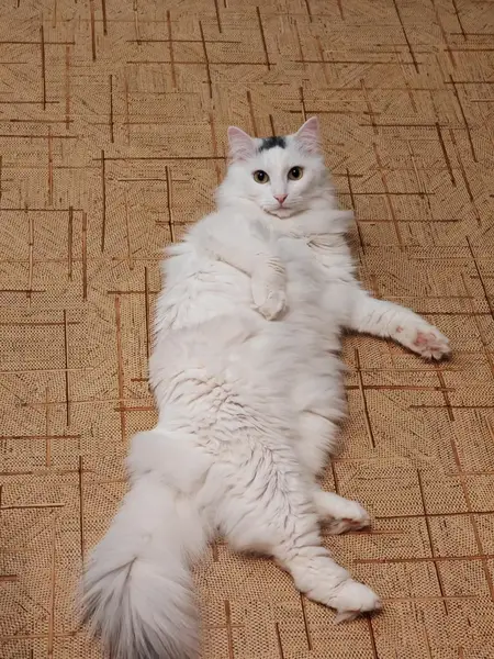 Белая кошка, в фиолетовом ошейнике. Явно домашняя, ухоженная и упитанная. По-видимому, ее сбила машина возле Халтурина, 38 - лежала утром в сугробе возле дома. Сейчас находится в вет. Клинике.