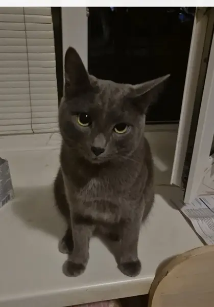Возле дома 49 по ул. Зорге найден СЕРЫЙ кот. Кастрированный. Срочно ищем старых хозяев - кот очень пугливый, видно, что домашний.