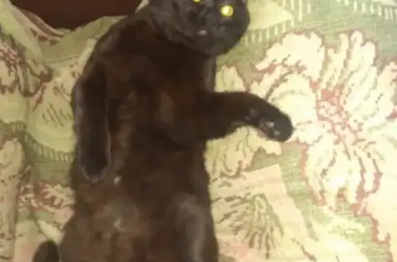 Кошка дымчатый окрас, желто-зеленые глаза, на вид возраст около года, явно бывше-домашняя, растеряна, вторые сутки не уходит с места, где обнаружена, боится, но в то же время тянется к человеку (очевидно, просто опасается незнакомых), просит помощи. Неустанно мяукает и смотрит по сторонам, озираясь, боится всего (явно на улице недолгое время) и сильно мерзнет!!