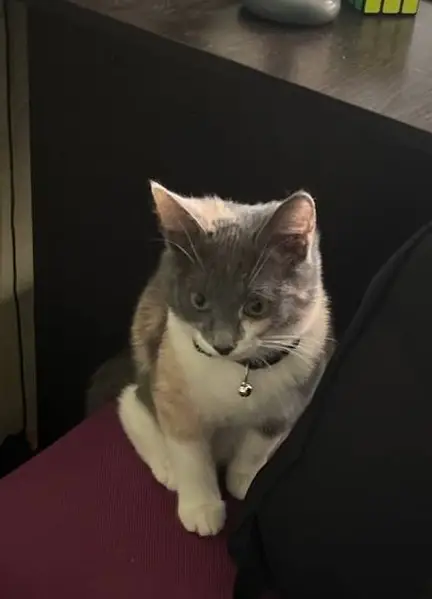 породу не знаю,серо-белый мальчик,выхожу с работы около крыльца встретил меня и начал ластиться,на вид здоровый,не особо грязный домашний кот,на вид около года