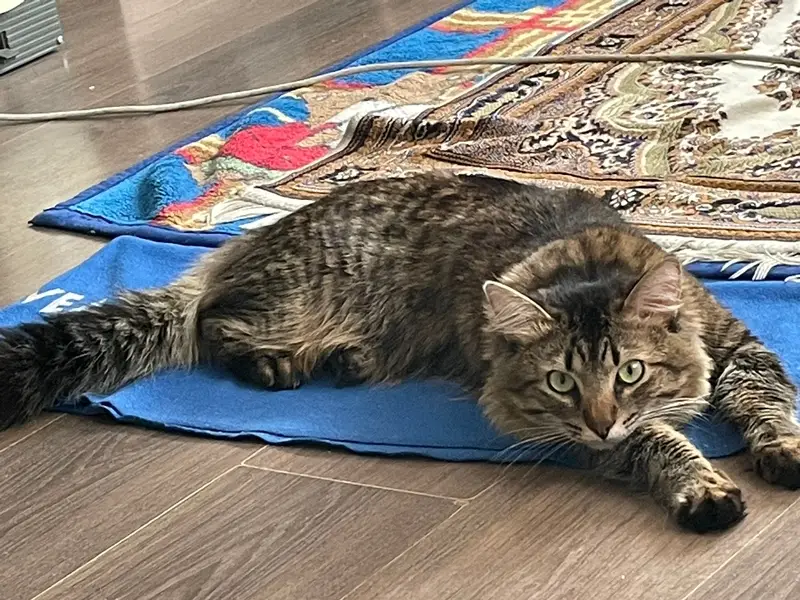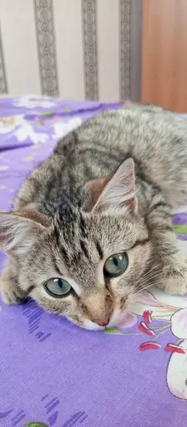 Кошечка, видно, что домашняя, очень боится улицу. С 9.00 до 20.00 находится в СДЭК по адресу проспект октября 93. На ночь приходится её оставлять на улице. Блох и всего прочего нет. Кошечка пушистая очень красивая, имеет шикарный хвост. Играет без когтей.