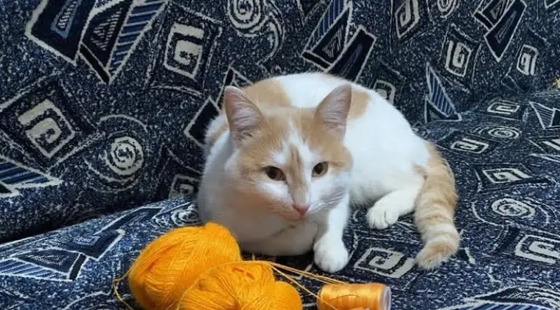 Бело-рыжая кошка или кастрированный котик (не понимаем), ласковая, знает лоток, видно что была домашней Пришла в ночи 4 мая в офис в районе Дома печати и не уходит Вдруг кто-то потерял, ищем хозяев!