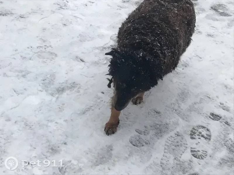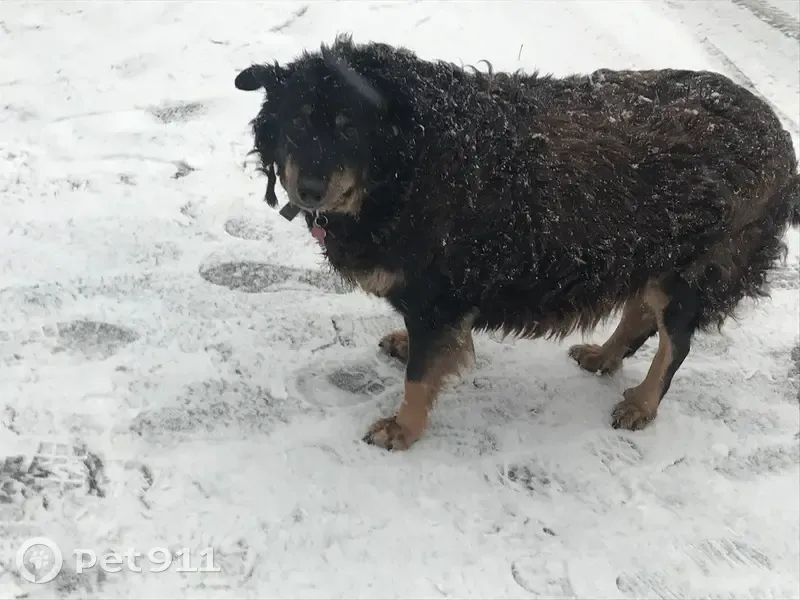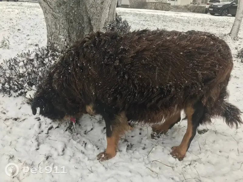 Собака чёрного, коричневого и золотистого/рыжеватого окраса, с красным ошейником в виде кости, увидела в 12:20 в на пересечении Аксакова, 60 и улицы Чернышевского. Вся в колтунах, бедная, надеюсь, найдётся хозяин, а то на улице холодно. Только сфотографировала собаку, у себя держать не могу.