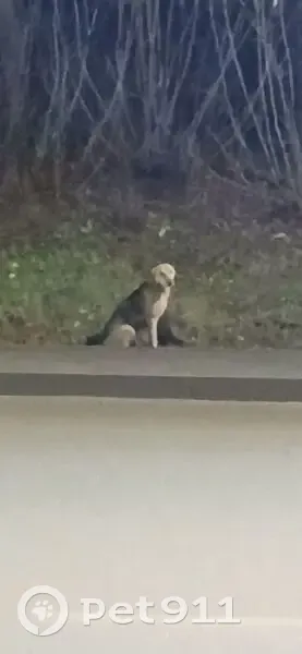 Собака сидит уже неделю на краю дороги. Никуда не уходит. От любой еды и воды отказывается. Видно, что в сильном стрессе. К себе ближе, чем на 10 метров не подпускает. Периодически ходит около припаркованных машин.