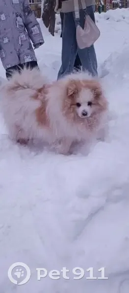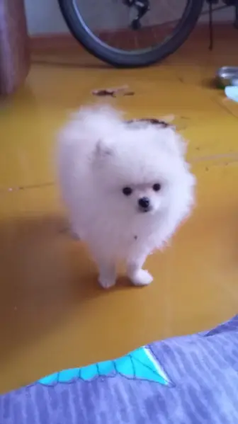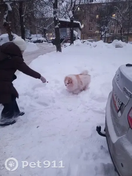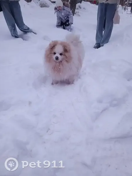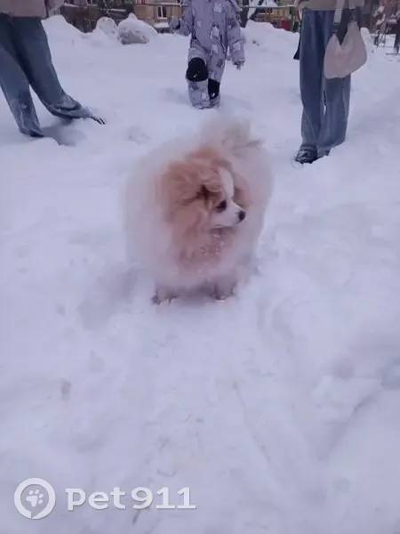 Большой белый с бежевым косматый шпиц, поранена лапа, с трудом ходит. Абсолютно потеряна и несчастна. Дети на улице говорят, что это домашняя собака, выброшенная на улицу..