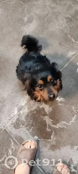 Мальчик, молодой, синий/голубой ошейник. Цвет чёрный с коричневым.