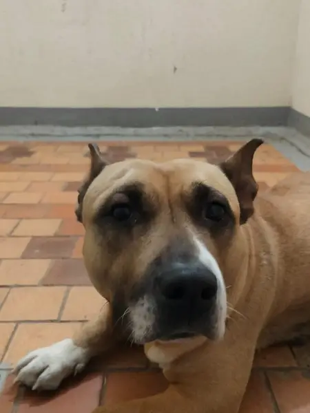 Найдена собака, очень добрая и ручная. Ушки купированы. Хозяин отзовись.