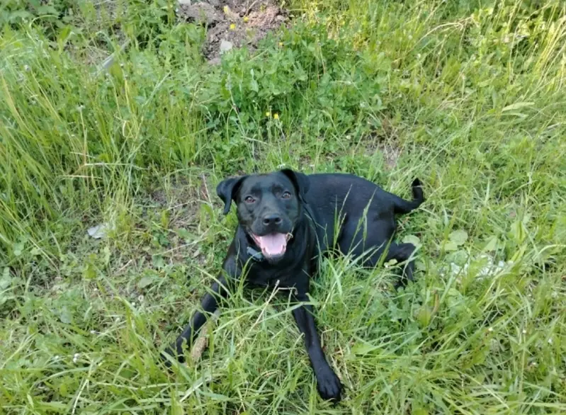 Найден щенок, бегает на мингажева, на ошейнике был ещё синий кулончик в виде косточки.