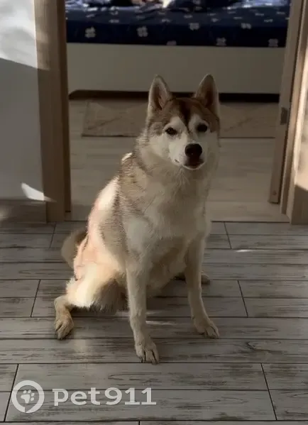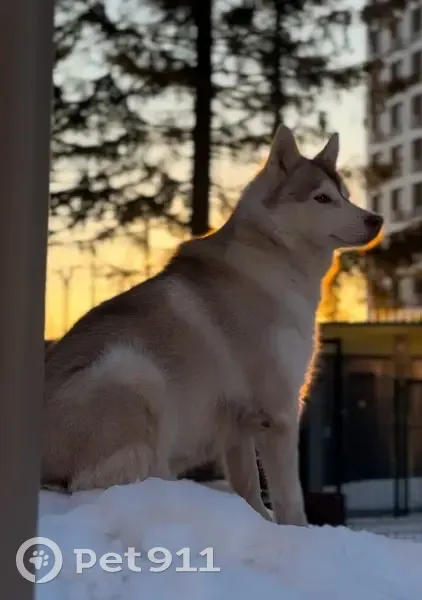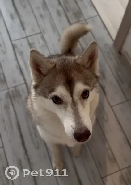 Порода похожа на хаски, окрас пепельный, глаза карие. Лежала мерзла у подъезда в ночь с 8 на 9 февраля.