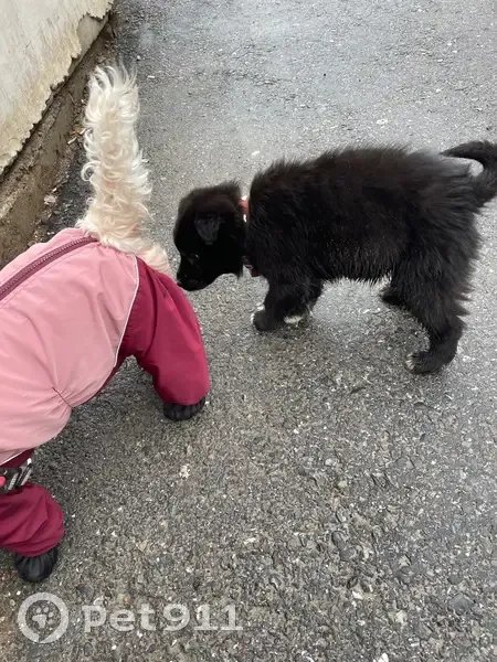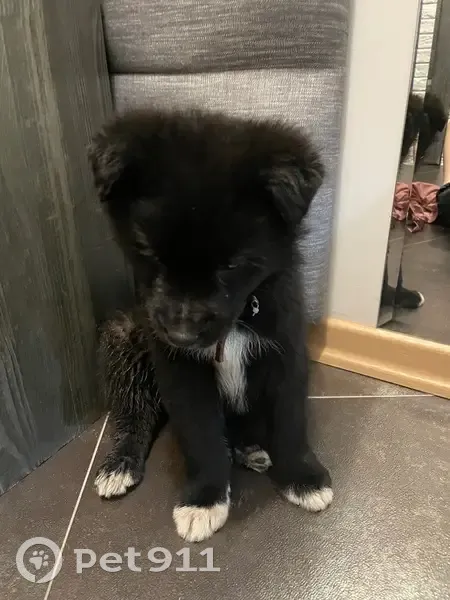 Найден маленький щенок в Уфе возле дома Гафури 54 чёрный с белым, на шее коричневый ошейник с металлическими сердечками, адресника нет. На вид 2 месяца. Активный, пытается побежать за каждым прохожим и скулит, когда не обращают внимания.