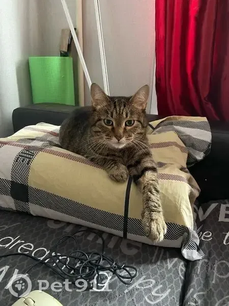 Обычный окрас барсика так сказать, каких либо особых примет к сожалению нет, в верхней части правого глаза коричневое затемнение, типа родинки в глазу (Не болезнь) Стерилизованный
