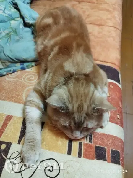 Котик Лаки 7,5 Лет. Шотландец. Рыжий. В Собачьем Ошейнике. На Спинке Белая Бабочка. Нет Половинок Ушей. Он Их Отморозил, Когда Потерялся в Первый Раз 1 января 2024 Года. Он Очень Болен, Нужно Регулярное Лечение! Возможно, Когда Выносили Мусор, Он Вышел Из Квартиры. А Так Как у Него Очень Много Любимых Мест, Его пропажу Не Сразу Обнаружили! Помогите Его Найти, Иначе Он Умрёт Один На Улице! Пожалуйста!