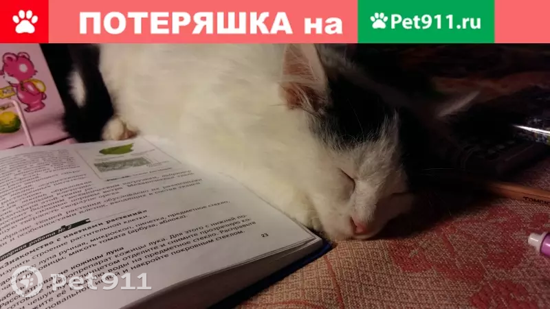 Пропал чёрно белый любвеобильный и очень пушистый кот в микрорайоне Зелёная роща, улица Белорусская, кот сам белый а чёрные только два пятна на лбу и хвост