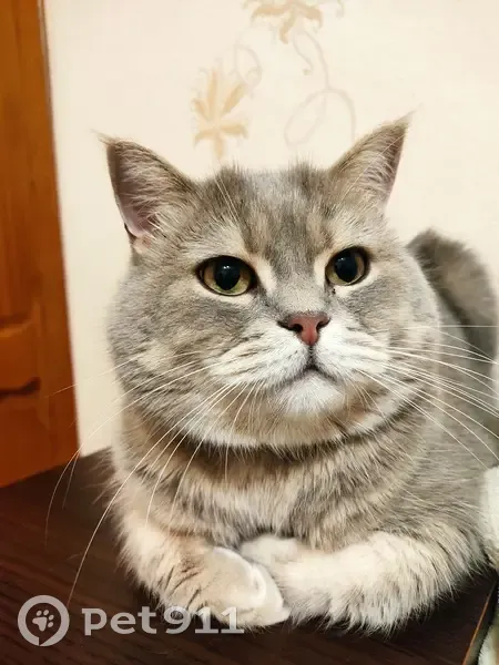 Кот кастрированный. Не чистокровный шотландец, серого окраса, по бокам видны рисунки полоски характерные породе. Видимо утром убежал через форточку с первого этажа.