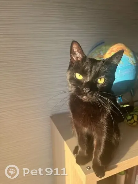 Чёрная домашняя кошечка Нюша. Глазки жёлтые, большие, на грудке один белый волос, худенькая, шерстка гладкая. Упала из окна 3 этажа и убежала, возможно травмирована. Пожалуйста, звоните в любое время. Если увидите или поймаете, придержите у себя, заберём быстро за вознаграждение!