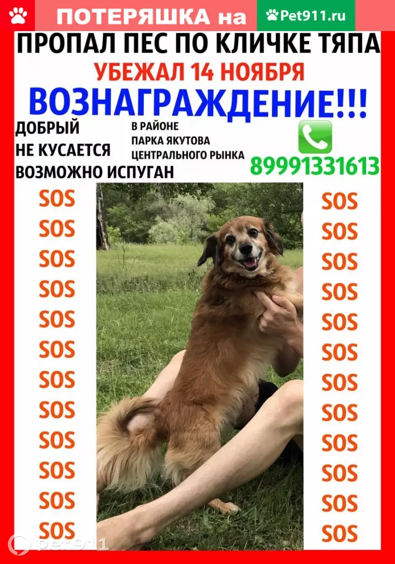 Пропал в районе парк Якутова, окрас рыжий, животик светлый, хвостик пушистый, добрый, пугличый, кличка Тяпа. Последний раз видели на ул. К. Маркса,