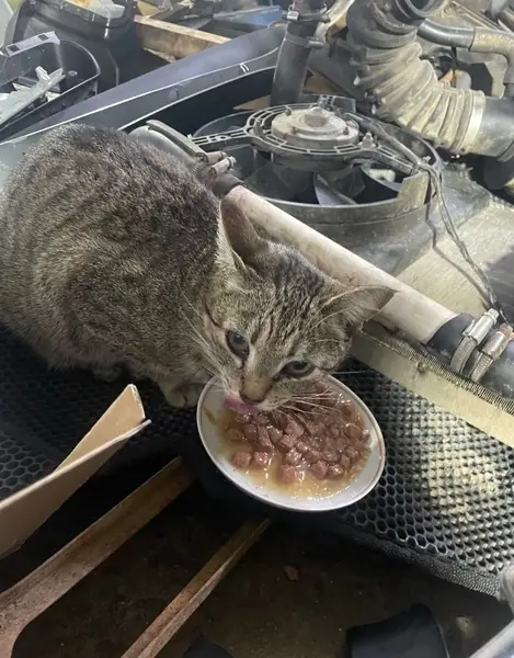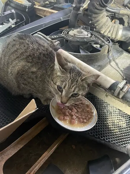 Маленькая, полосатая, домашняя, скорее всего выбежала, пока дверь была открыта