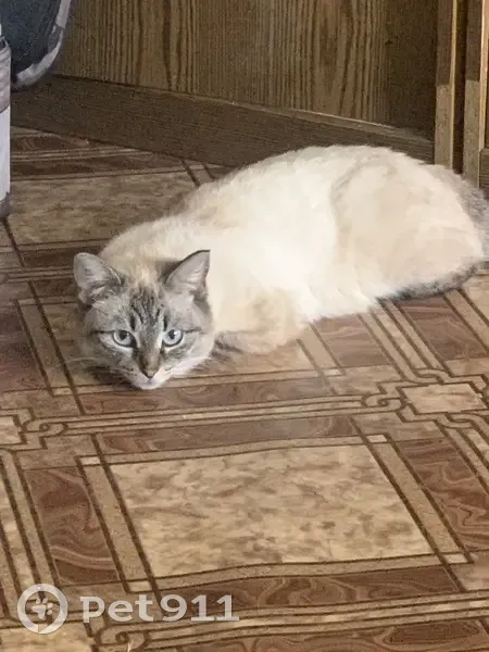 Кошечка контактная, помесь с сиамской, основной окрас светло-серый, хвост, лапки и мордочка темно-серые. Ежедневно выходит на пару часов на самовыгул. Возможно, кто-то напугал, и могла убежать в соседние дома.