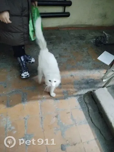 Белый длинношерстный, вислоухий, хвост персиковый. Крупный. Кот домашний, приучен к лотку, спокойный, ласковый.