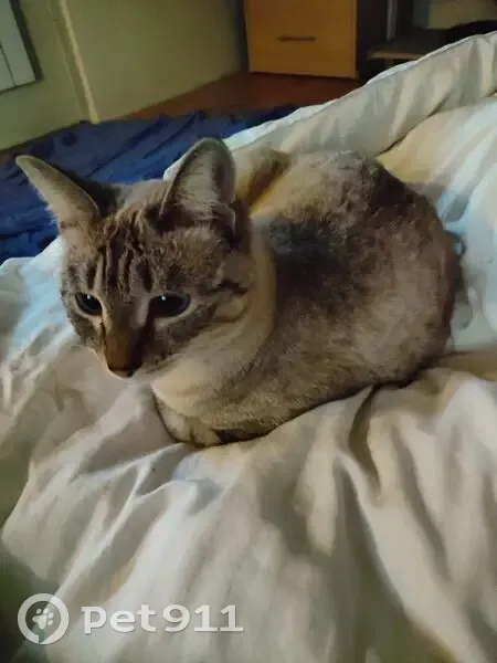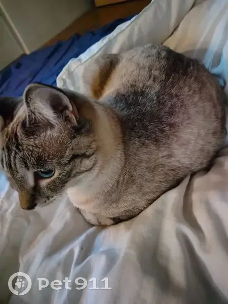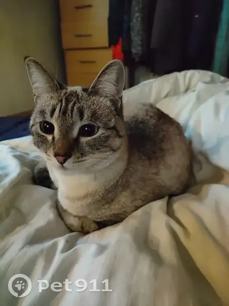 Молодая кошечка, возраст, по словам ветеринара, 10-12 месяцев, стерилизована 1 месяц назад. Дымчатый окрас, шерсть " короткая плюшевая", глаза серо голубые, очень любопытная непоседа. Домашняя и ухоженная.