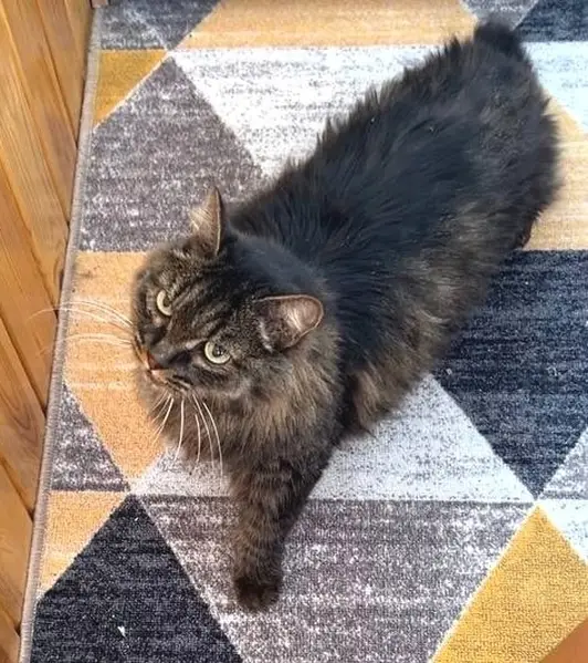 Окрас черно-серый. Пушистый. Длинные уши с кисточками. Возраст 3 года. Просьба вернуть за хорошее вознаграждение. Коту требуется спецпитание.
