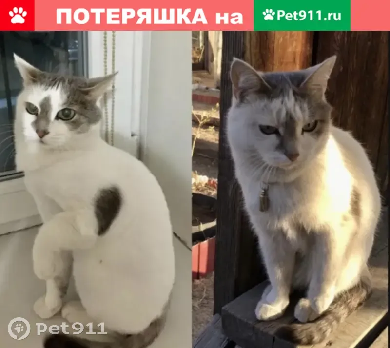 Пропала кошка Шуша белой масти с серымы ушами, хвостом и пятнами, в бежевом кожаном ошейнике с металлическим адресником. Возраст 10 лет, стерилизована. Кошка домашняя, но ушла с дачи, все адреса и контакты в адреснике.