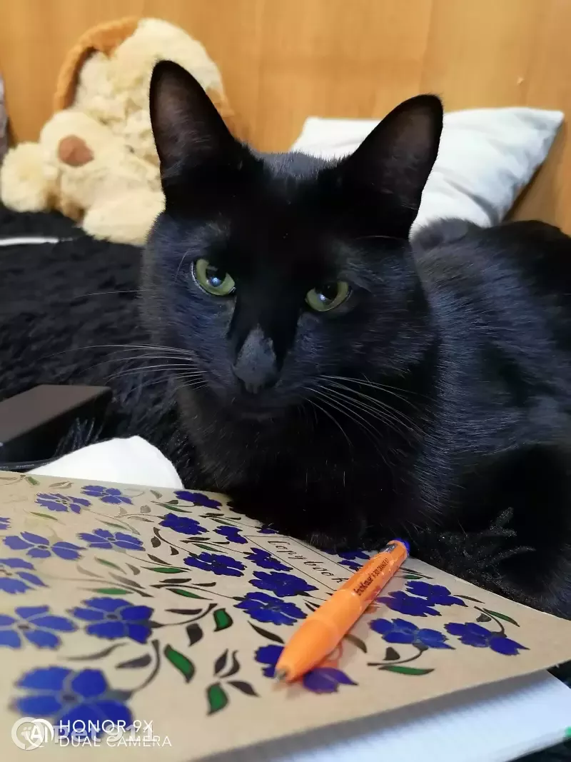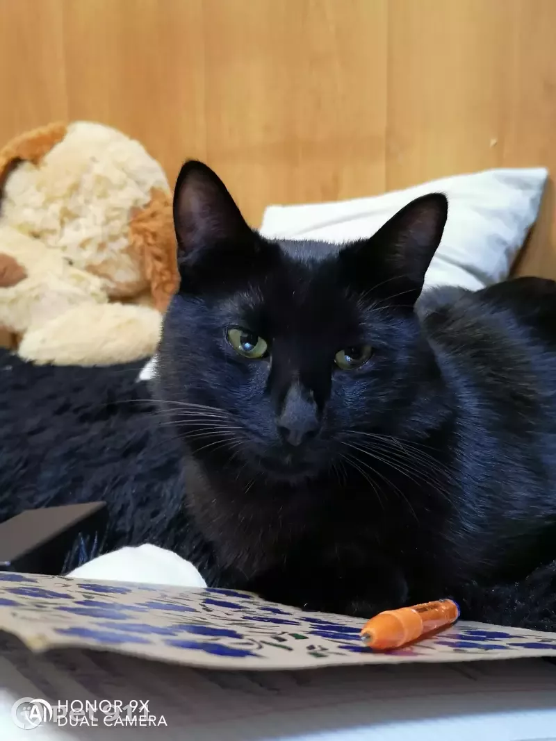 Чёрный как смоль кот. Зовут Коба. Вчера в семь утра выпустили подышать. Он редко спускается на землю, в основном сидит на подоконнике. Через некоторое время пропал без следа. Ходили искатили в окрестностях, по подвалам и прочим местам. Дал объявление в вк, отозвалась девушка. Сказала что видела чёрного кота по улице Буйко. Сегодня трижды обследовал тот район но безуспешно. Очень прошу помочь в поиске неравнодушных людей. Отблагодарим
