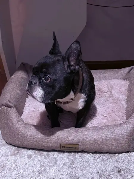 Французский бульдог, девочка 3 месяца, окрас черно белый кличка Мила