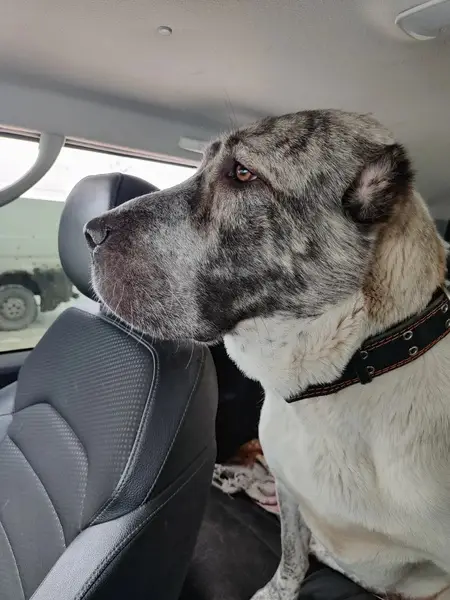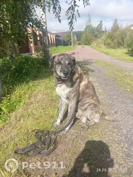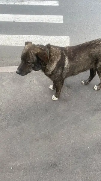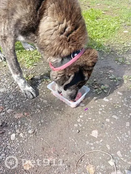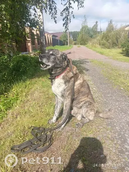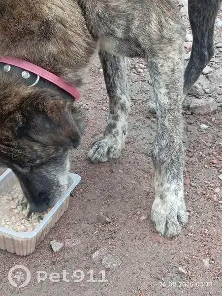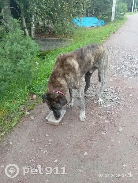 Ищем прежнего или нового хозяина. Окрас леопардовый или тигровый. Коричневый с чёрным и белым вкраплением, собака высокая, худая, одно ухо порезано, имеется два ошейника один из которых розовый от блох, собака найдена на обочине дороги. По характеру спокойная может ходить на поводке рядом с хозяином.