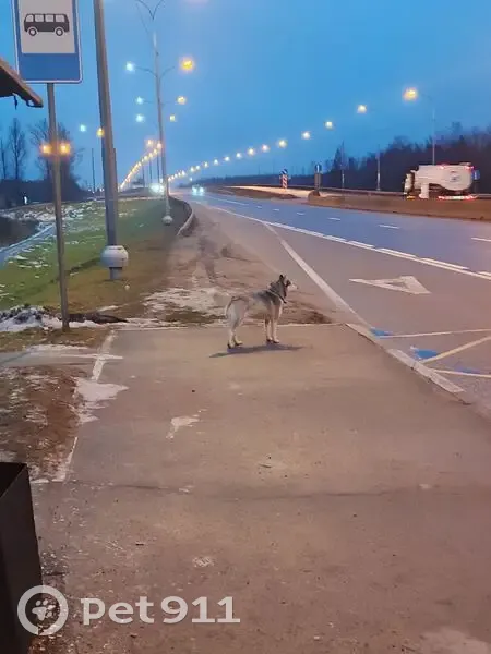 В районе Ульяновского шоссе, по нему самому, на автобусной остановке, что на Московском шоссе в сторону Питера, бегает собачка Хаска в ошейнике , дружелюбная, идёт на контакт с человеком. Видел вечером 29.11.25г. И утром 30.11.25г.