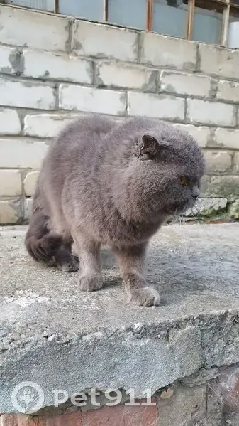 Окрас серый, нос сплющеный, породистая кошка найдена у шестого подъезда по улице Ленинградская 32. По характеру очень ласковая идёт на контакт с людьми. Ищет своего хозяина.