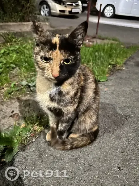 Трехцветная, молоденькая кошечка, с утра сидела в траве у большого магнита на репина, сейчас сидит и мерзнет у репина 39, 4 подъезд возле пивнушки. Чья кошка?