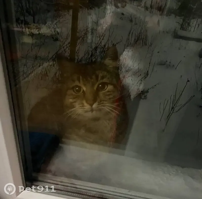 Кот тигрового окраса летом 2025 г. Прибился к частному,ласковый ,контактный . К себе взять не можем ,так как 2 взрослые кошки . Вернём старому или новому владельцу .