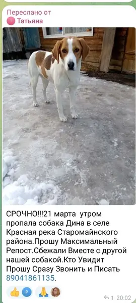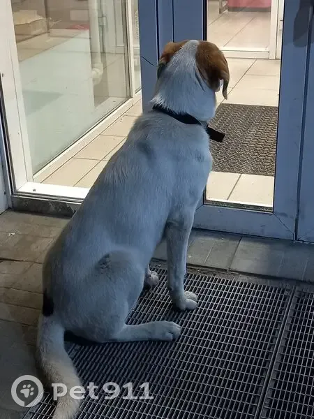 Ещё маленький щенок, возраст до года, мальчик. Сидел у магазина, искал и ждал хозяина. Окрас белый, ушки коричневые висят, на спине около хвоста тёмное пятнышко