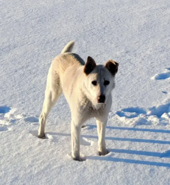 Светлая собачка с рисунком над носиком. С ошейником. Лапка хромает. Видела рано утром на остановке Шолмова. Там ее уже нет, в окрестностях тоже не нашла. Вчера вечером сидела у подъезда на промышленной