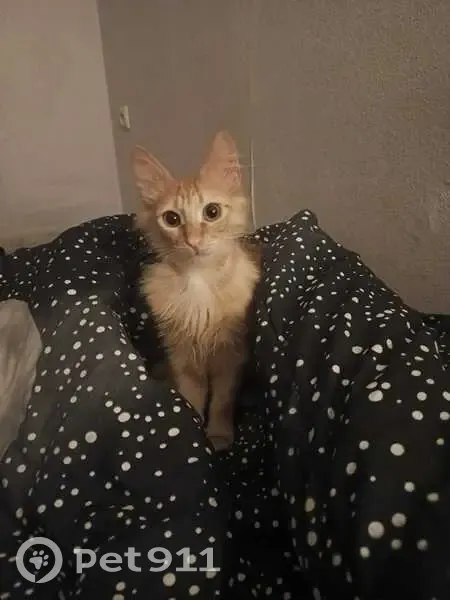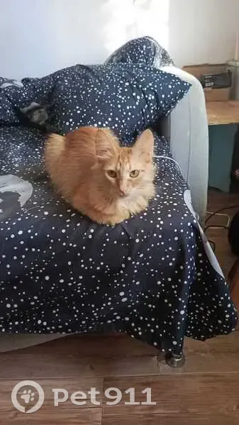 Рыжий с белыми полосками,пушистый,длинные ушки,хвостик короткий,может откликаться на Фоксик.Пуглив,не ко всем пойдет,к улице не приучен,буду рад любой информации о местонахождении котейки