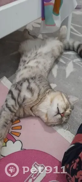 Пропал кот,окрас пахож на снежного барса и у левой ушки кончик не острые чу чуть разделён,очень пугливый.Перед пропажой очень себе тревожно вёл,в этот день отмечали день авиации и на небе летали истребители сильном звуком после этого домой не вернулся