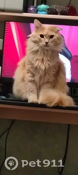 Крупный, пушистый, окрас персиковый, левое ушко свисает. Пропал 2 февраля, не заметили как в дверь прошмыгнул. Котик контактный, добрый и ласковый.