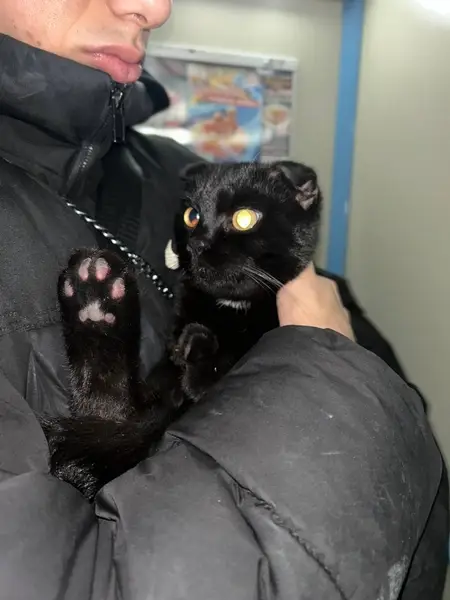 Красивый черный кот, гладкошерстный. Возраст 10 лет. Имеются небольшие залысины в области живота. Жил на улице, в подвале соседнего дома Всегда отзывался на голос, но неожиданно пропал в конце января.