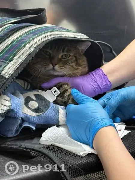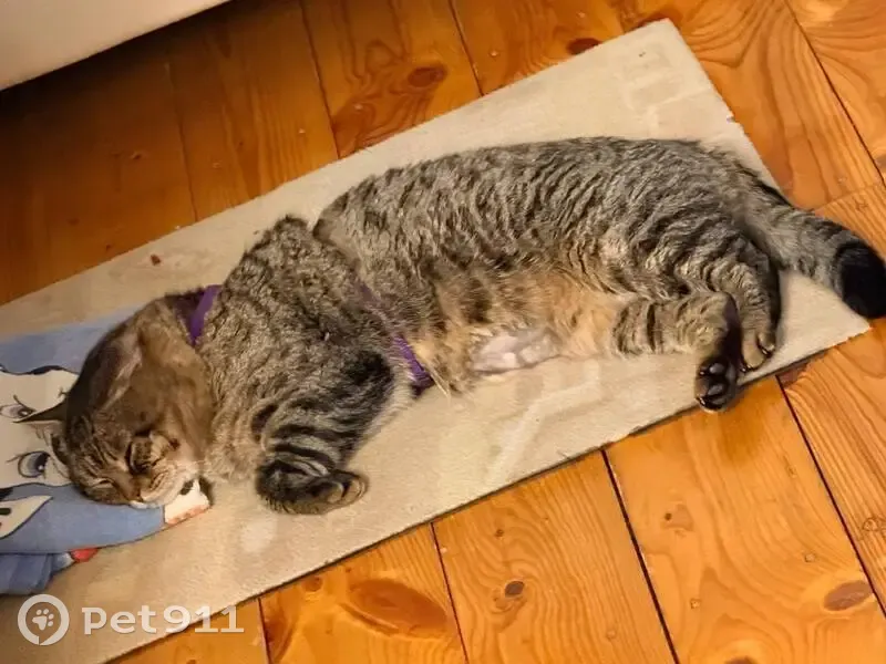 Котик с огроменными тестостероновыми щеками, весом около 5кг, не кастрированный, дрессированный, отзывается на кличку ХАНТЕР, на пузике выбрита шерсть как на фото (для узи выбривали), очень ласковый, если гладить, сразу же мурлычит как трактор с высоким звуком из-за особенности строения связок (никогда раньше такого не слышал, поэтому спутать с другим трудно)
