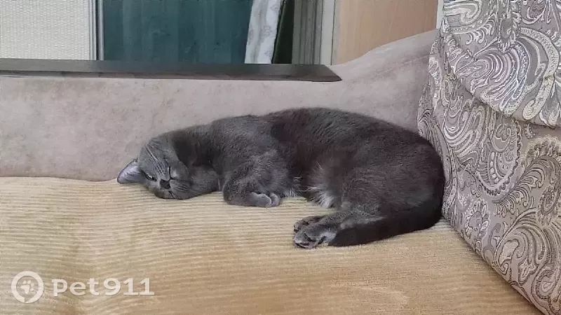 Беспородная серая кошка, гладкошёрстная, с большим белым пятном на животе, желтоглазая. Зовут Муся, на имя не откликается, на кс-кс-кс может повернуть голову. Вывалилась из окна второго этажа вместе с москитной сеткой, с обратной стороны дома, где нет подъездов.