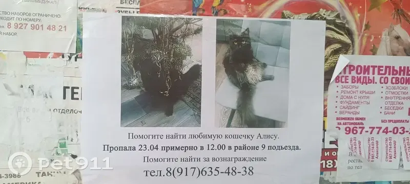 Выпала с 3 этажа по нашему недосмотру днем 23.04.2024.ей полтора года звать Алиса. Очень ласковая. Очень надеемся вернуть