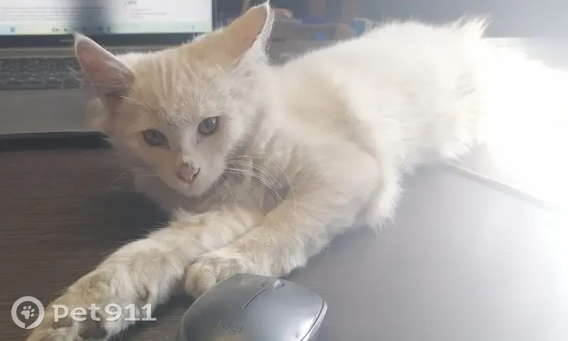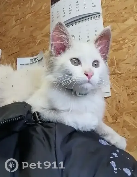 Котёнок белого цвета, немного грязноват, мальчик, уехал в запаске камаза с ул. Промышленной 4, предположительно мог спрыгнуть на остановке в районе гидроаппарата