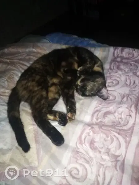 Черная кошка, сантиметров 70 в длину, черная с пятнами рыжего и белого цвета, возможна травма лапок, так как предположительно спрыгнула через форточку с 5 этажа