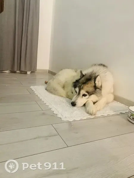 Кобель, светло серого окраса, с темными вкраплениями, карие глаза. 10 лет, требует особого ухода, добрый, дружелюбный к детям. На шее адресник с кличкой и контактным номером телефона.
