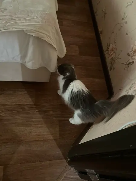 Черно белый пес,с прикусом,старенький 16 лет,плохо видет((