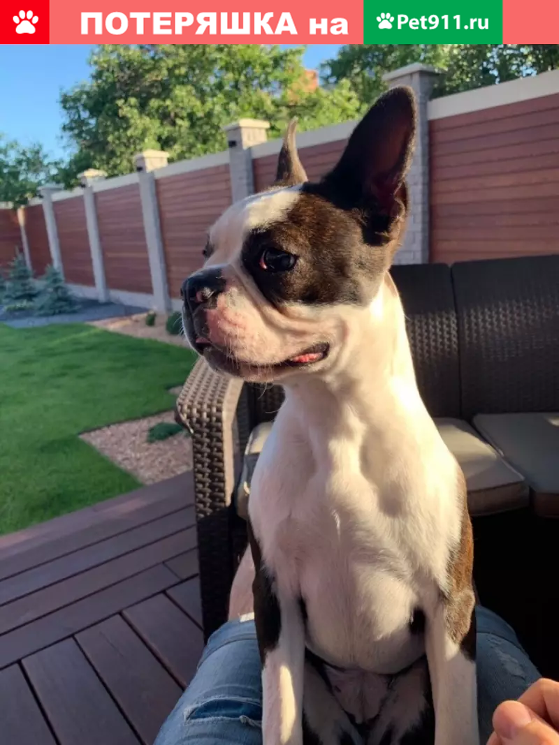 ПРОПАЛА СОБАКА! Щенок Бостон-терьера, 9 месяцев, отзывается на кличку Ева, на шее тонкий ошейник. Пропала 07.08.2019г в 21:00 в Северной части города, в районе ул. Тимирязева, и пер.Казанской . Кто знает о местонахождении щенка просьба сообщить по телефону Вознаграждение ГАРАНТИРУЕМ!
