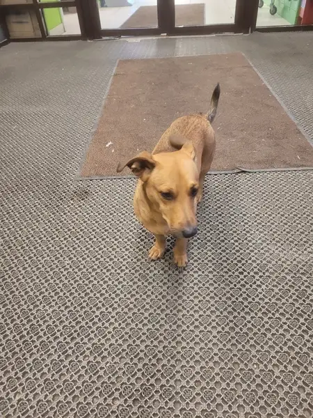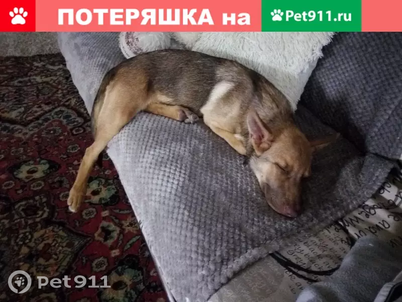 Пропала собака. Рыже-чёрная, белая грудка. Уши стоят, хвост длинный. Отзывается на Симбу. Ошейник чёрный с красными полосочками.